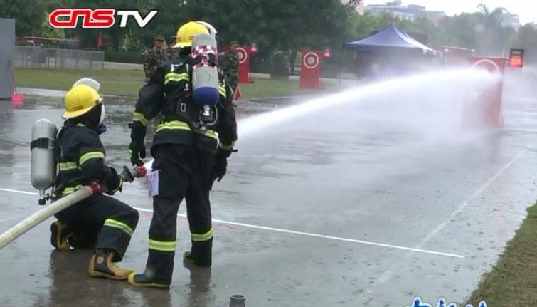 广西消防部队雨中大规模“比武”