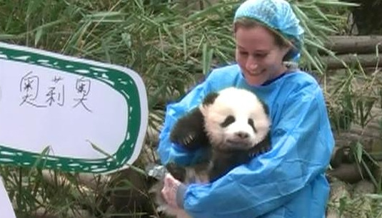 "奥运熊猫"首次亮相 获名"奥莉奥"