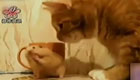 实拍贪吃老鼠在猫面前抢食