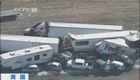 航拍美国感恩节百余辆汽车相撞