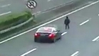 监拍男子高速公路上散步被撞翻