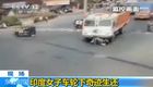 实拍:印度女子卡车轮下奇迹生还