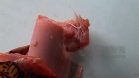 市民曝双汇火腿肠里吃出鸡毛