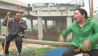 男子悬空而坐与施工队对峙 阻止快速路施工