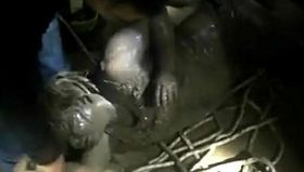 男子发现鸭子被冻湖面 跳湖破冰救援