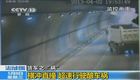 实拍大货车超速行驶撞上隧道壁 小孩被甩出