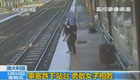 澳大利亚一乘客跌下站台 勇敢女子相救