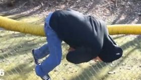 实拍:男子与人吵架 爬上高速视频监控器杆顶