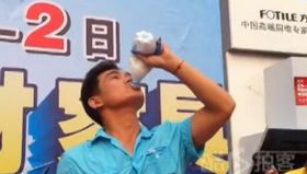 男子为促销当众喝油漆