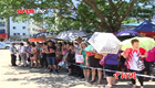 海南高考:父母撑伞望考场 老师助阵着红装