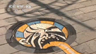 女大学生绘制涂鸦井盖 安全美丽两不误