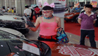 奇葩男"芙蓉面姐"穿短裙丝袜现身车展