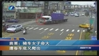 监拍:骑车女被卷货柜车底 奇迹般爬出