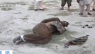 男子发现鸭子被冻湖面 跳湖破冰救援