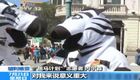 实拍:玻利维亚年轻人扮"斑马"参与交通指挥