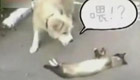 聪明“喵星人”装死 躲避狗狗追赶