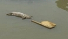 男子发现鸭子被冻湖面 跳湖破冰救援