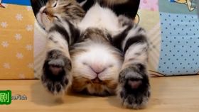 “喵星人”睡姿夸张 挡道萌猫