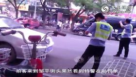 特警街头为城管贴乱停车罚单