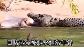 鳄鱼海边捕杀鲨鱼