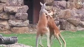 袋鼠疯狂对踢 超越人类了