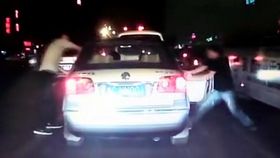实拍:美女街头持砖头疯狂砸车 只为报复负心男