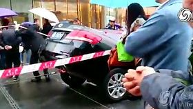 奇葩车冲下阶梯尴尬悬挂惊呆路人