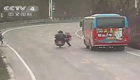 监拍客车违章停车下客 乘客横穿马路被撞