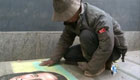 南京乞丐粉笔画蒙娜丽莎