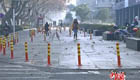 南京闹市人行道布满隔离桩 行人如穿“梅花桩”