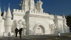 长春雪雕作品群迎春遭游人蹬踏拍照