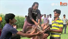 实拍印度男子拿妻子当人肉板做特技训练