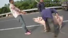 运猪车高速侧翻 "二师兄"满场撒欢