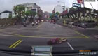实拍台湾一女子飞奔倒地碰瓷 吓坏司机