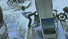 监拍:摩托男脚踢加油机刀刺员工