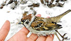 麻雀抢食散落大米成批死亡