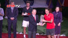 美女主持人直播球赛 被足球砸中脑袋