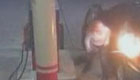 女子自助加油 静电起火点燃油枪