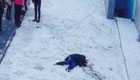 男子发现鸭子被冻湖面 跳湖破冰救援