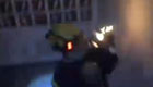 消防员抱"火球"冲下5楼