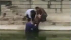 男子发现鸭子被冻湖面 跳湖破冰救援