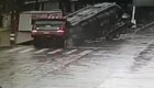 路面塌陷大货车拦腰陷入