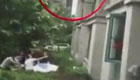 实拍夫妻把女儿扔离火场