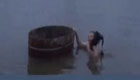 越野车坠入河中 六旬老人划木盆救人