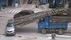 轿车遭毛竹“万箭穿心”