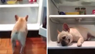 斗牛犬难忍炎热进冰箱避暑