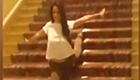 美女劈“一字马”下楼