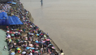 观潮游客齐聚江边争睹钱塘江大潮