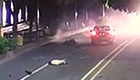 监拍男子骑摩托被逆行轿车撞飞