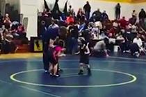 美4岁男童摔跤擂台面对5岁女孩仓皇逃跑